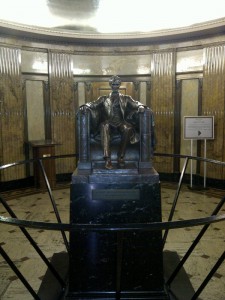 Rotunda of the Abraham Lincoln Tomb, with reproduction of the Lincoln statue in the Lincoln Memorial in Washington DC.