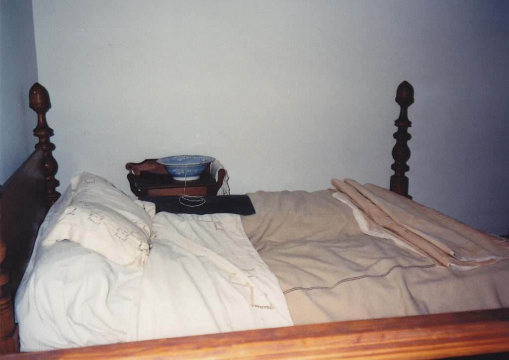 CSX Transportation trains still rumble past the site on the old Richmond, Fredericksburg, and Potomac line. The Shrine building has been preserved and restored, and is still about 45% original. Inside the room where Jackson died, the bed he died in and one of his blankets is present, as is a clock on the mantle that was also in the room at the time of the general’s death. Other rooms feature displays and exhibits that show how those rooms would have looked as they were occupied by medical and other staff. The Stonewall Jackson Shrine can be reached from I-95 by taking Exit 118 (Highway 606) and driving east on 606 for about four miles.