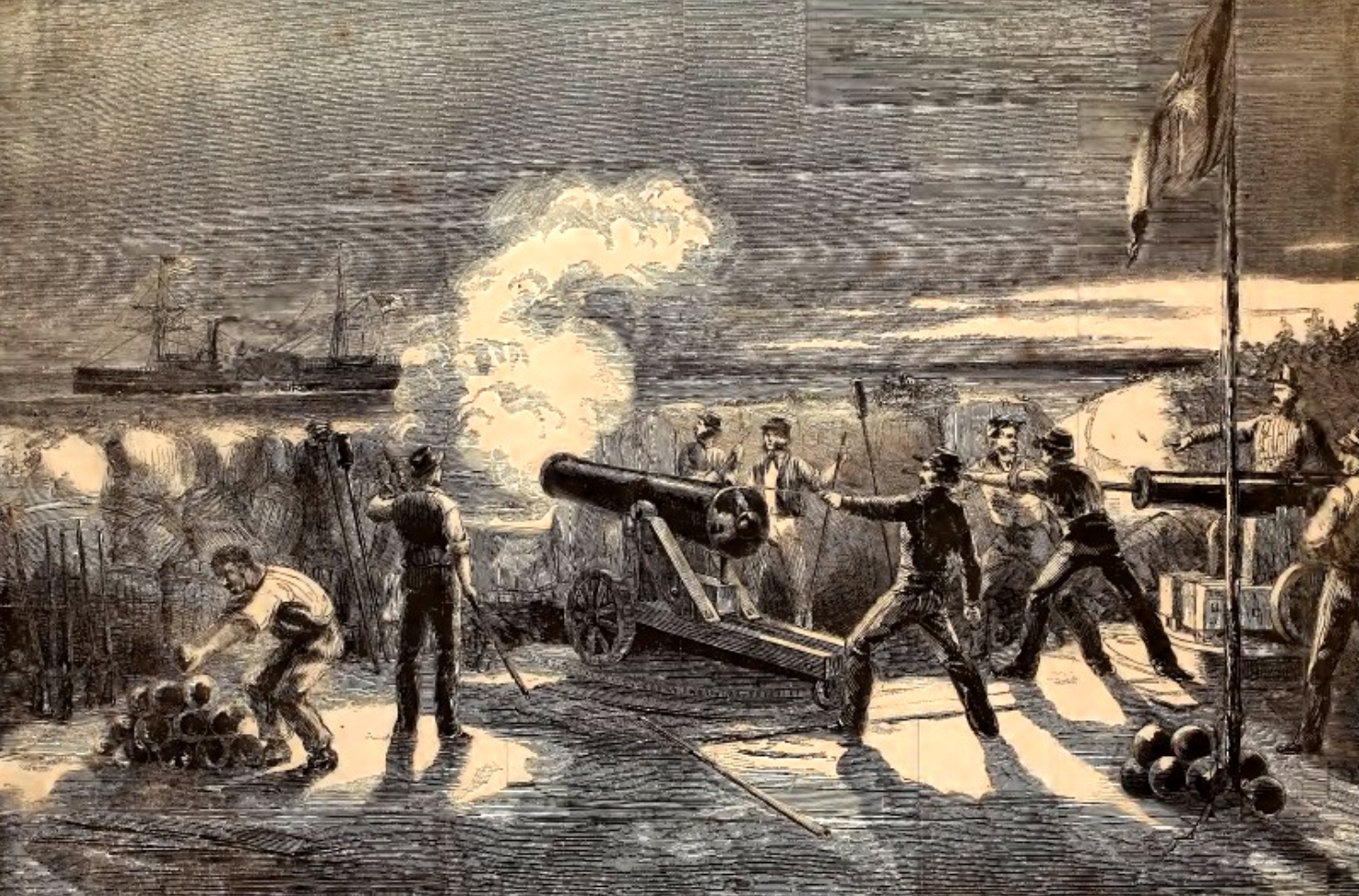 Anderson’s troops inside Sumter manned their guns. The shots from Morris Island missed at first, but then one scored a hit on the side of the ship. As the Star of the West approached Sumter, it came within range of the guns at Fort Moultrie. The steamer came under a cross fire, and its captain broke off his approach to Sumter and headed back out to sea.